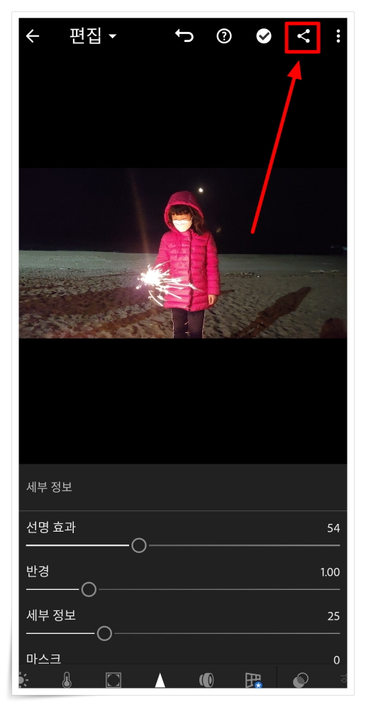 5. 편집이 완료되었다면 우측 상단 "공유" 아이콘을 클릭해 주세요.