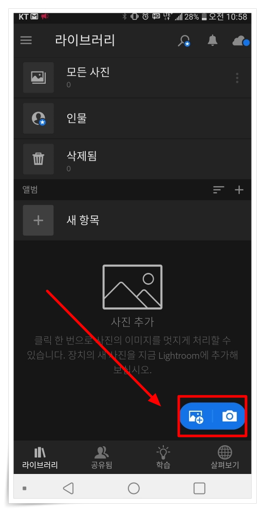 1. 앱 실행 후 우측 하단에서 사진을 추가해 주세요.