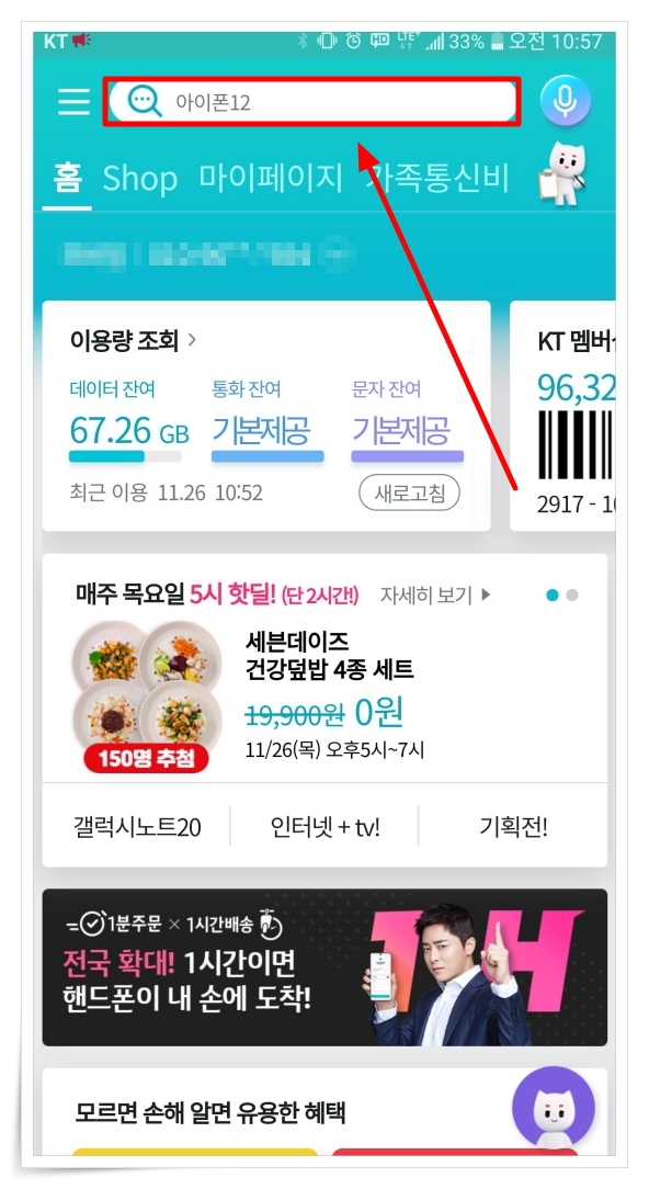 ▼ 스마트폰에서 "마이케이티" 앱을 실행해 주세요.
