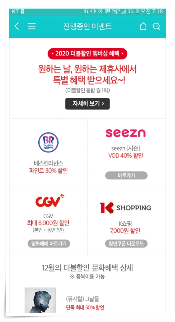 ▼ 진행중인 이벤트를 보면 더블할인 멤버십 혜택을 보실 수 있어요. 월 1회만 가능하다는 점 유의해 주세요.