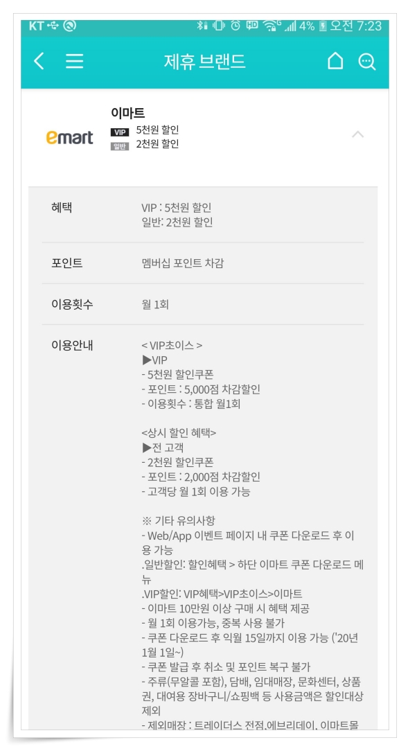 ▼ 유용하게 사용할 수 있는 제휴처를 살펴보면 이마트 월 1회 5000원 할인쿠폰, 현대 HMALL 최대 7% 추가할인, 던킨도츠 아메리카노+글레이즈드 무료 이용권을 사용하실 수 있어요.