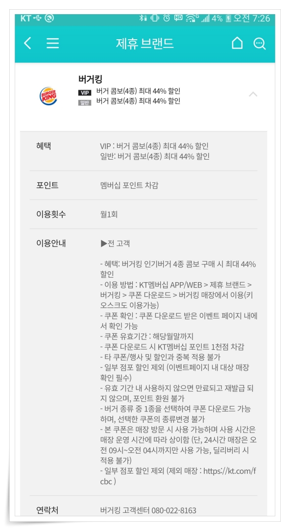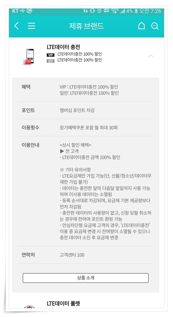 ▼ 그리고 올레TV VOD 20%할인, 버거킹 버거콤보 44% 할인, LTE데이터 100% 충전도 이용하실 수 있습니다.