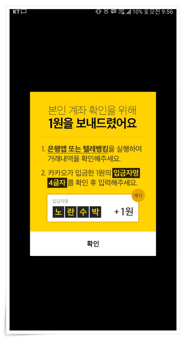 ▼ 본인 명의 계좌를 입력 하면 1원을 송금받게 됩니다. 입금된 1원의 입금자명 4글자를 입력하면 인증서를 발급받을 수 있습니다.