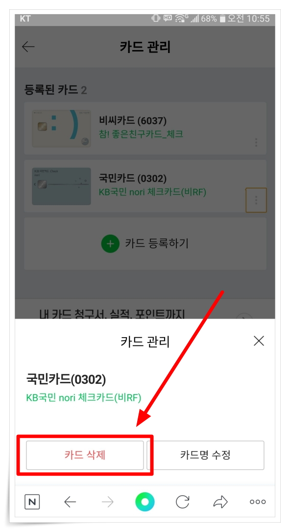 ▼ 이제 카드 삭제를 통해 깔끔하게 정리하실 수 있습니다.