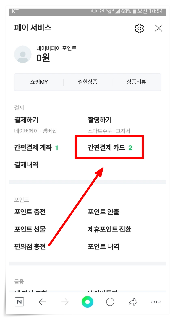 ▼ 페이 서비스에서 "간편결제 카드"을 클릭해 주세요.