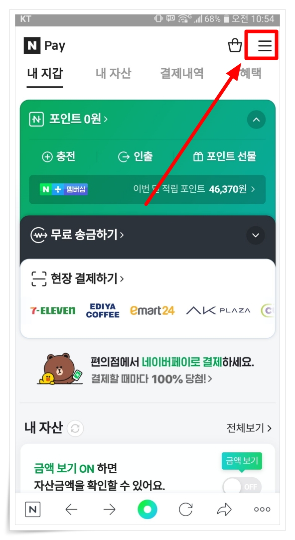 ▼ NPAY 우측 상단에 있는 三 메뉴를 클릭해 주세요.