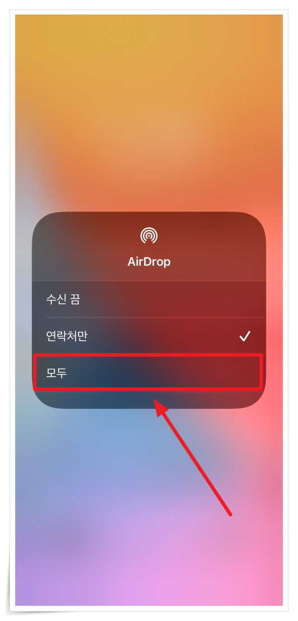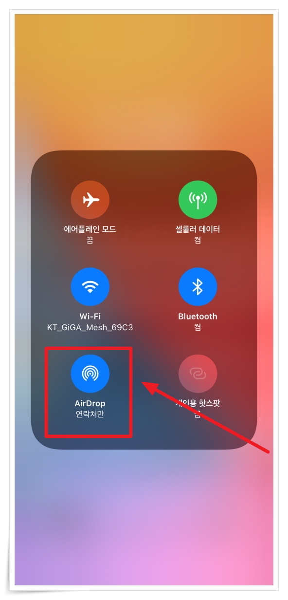 ▼ 에어드랍 아이콘을 클릭해 주세요.