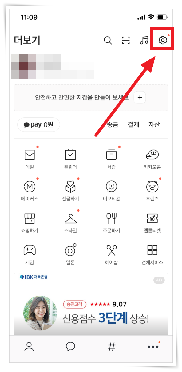 2. 더보기 우측 상단에 있는 톱니바퀴 모양의 "설정"을 클릭해 주세요.