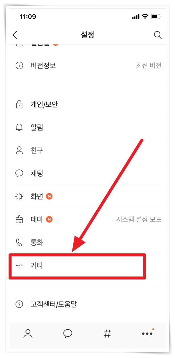 3. 설정에서 맨 하단에 있는 "기타"을 클릭해 주세요.