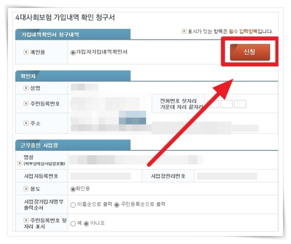 아래는 사대보험 가입확인서 출력 방법입니다. 천천히 따라 해 보시고 발급받아 보세요.