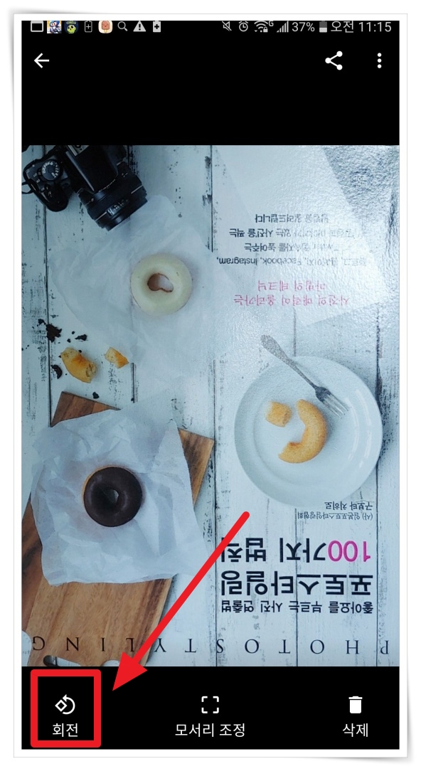▼ 완료된 사진이 뒤집혀 있을 경우 좌측 하단에 있는 "회전" 툴을 사용하여 조정해 주세요.