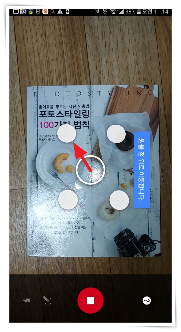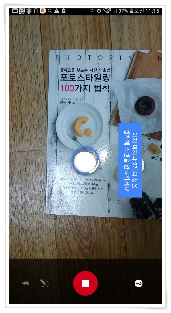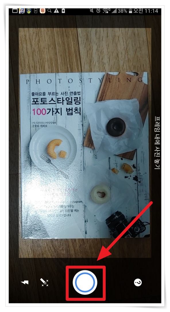 ▼ 프레임 내에 대상물을 놓고 촬영해 주세요. 저는 테스트를 위해 빛반사가 심하도록 실내등 아래에서 찍어봤습니다.