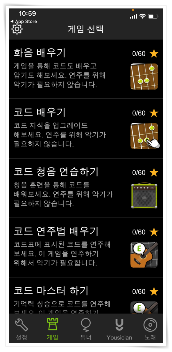 ▼ 이밖에도 화음배우기, 코드배우기, 코드 청음 연습 등의 기능을 이용하실 수 있습니다.