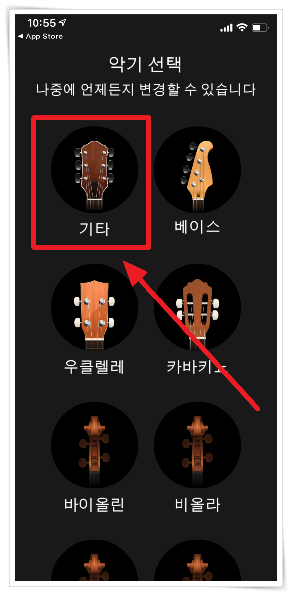 ▼ 앱 설치 후 악기 선택에서 "기타"을 선택해 주세요. (앱 설치하기)