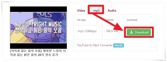▼ 상단 탭에서 "MP3" 선택 후 "DOWNLOAD"을 클릭해 주세요.