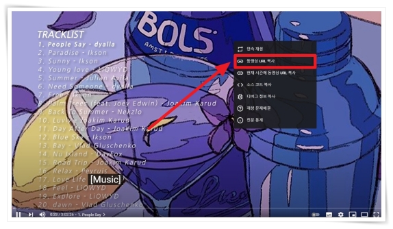 ▼ 먼저 다운받고 싶은 유튜브 영상을 실행 후 마우스 우클릭 메뉴에서 "동영상 URL 복사"을 클릭해 주세요.