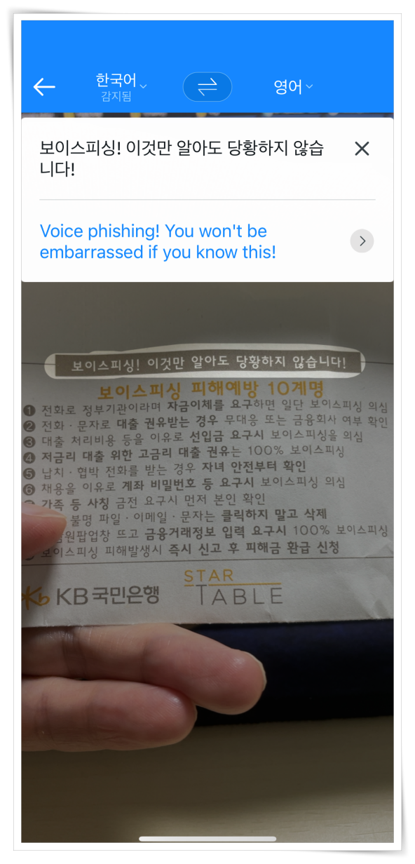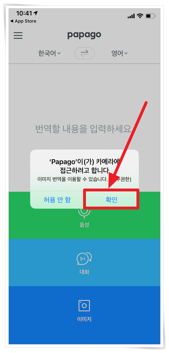 ▼ 이미지 번역은 사진을 촬영해서 인식하기 때문에 카메라 접근 권한을 허용해 주셔야 합니다.