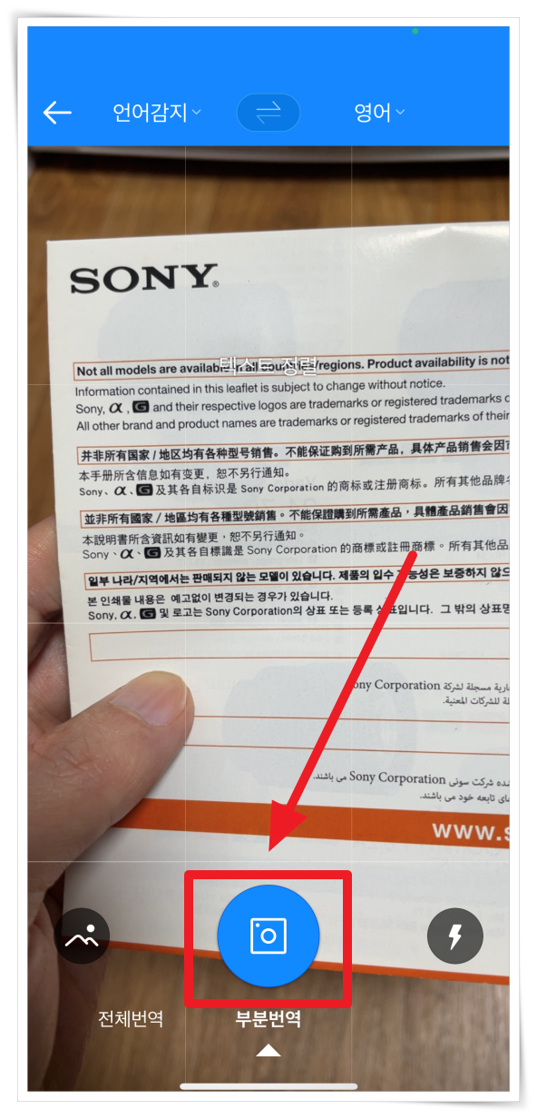 ▼ 번역하고 싶은 텍스트를 "부분 번역"을 클릭하여 촬영해 주세요.