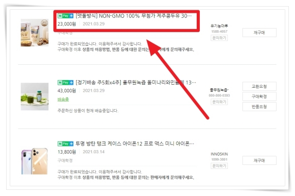 ▼ 구매 목록에서 제품명을 클릭해 주세요.