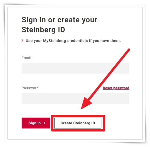 ▼ 로그인이 필요 합니다. 계정을 만들기 위해서 "Create Steinberg ID"을 클릭해 주세요.