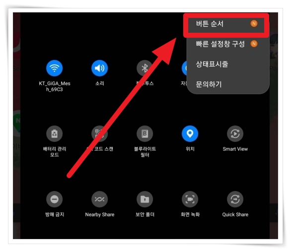 ▼ 메뉴에서 "버튼 순서"을 클릭해 주세요.