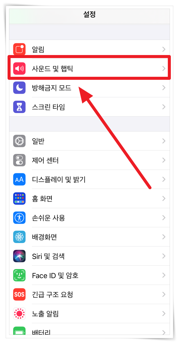 1. "설정" > "사운드 및 햅틱"을 클릭해 주세요.