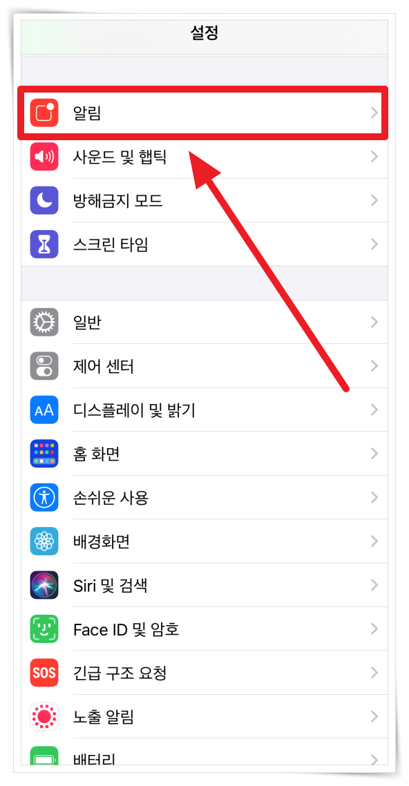 1. "설정" > "알림"을 클릭해 주세요.