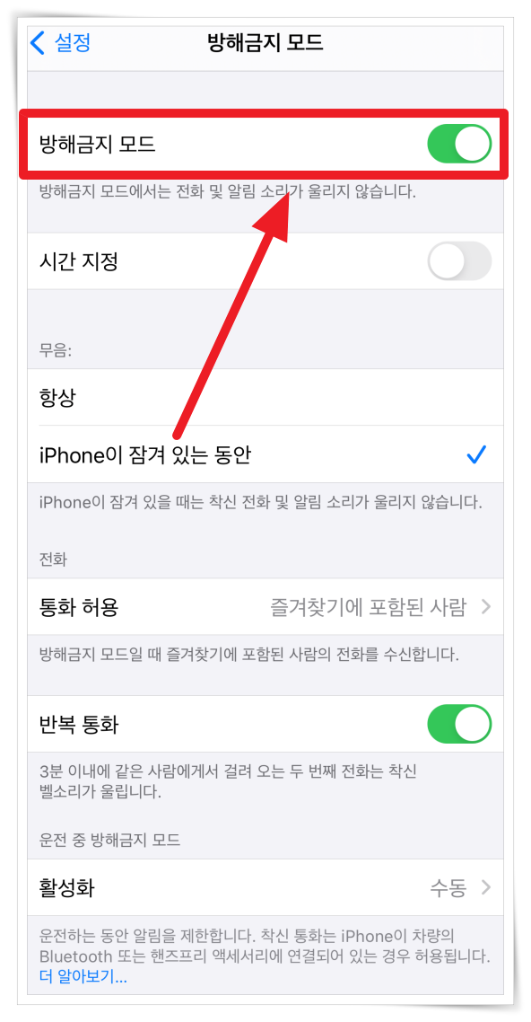 방해금지 모드 비활성화하기