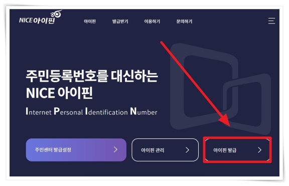 1. NICE IPIN 홈페이지에서 "아이핀 발급"을 클릭해 주세요.