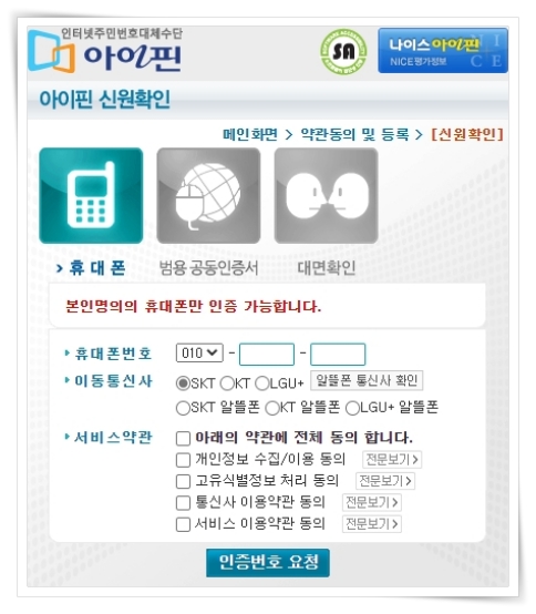 5. 본인인증은 휴대폰, 범용 공동인증서, 대면확인으로 인증하실 수 있습니다.