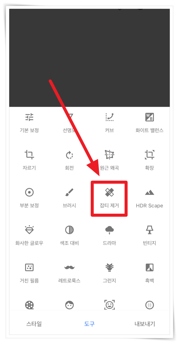 4. 도구 메뉴에서 "잡티 제거"를 클릭해 주세요.