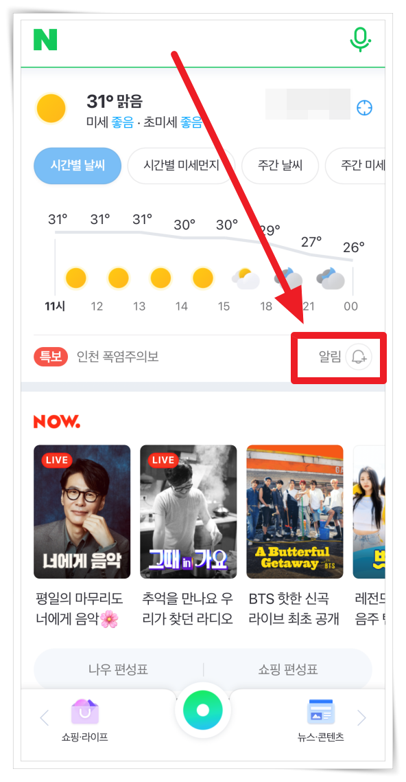 네이버 날씨 알림 설정 방법