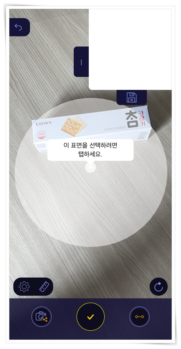 5. 측정 대상을 카메라에 위치한 후 표면을 탭하여 주세요.