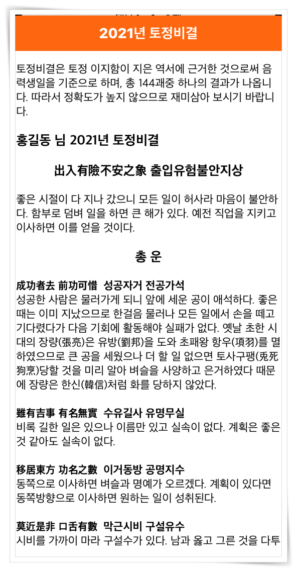 3. 만세력을 기반으로 토정비결, 당사주, 신살방위를 이용하실 수 있습니다.
