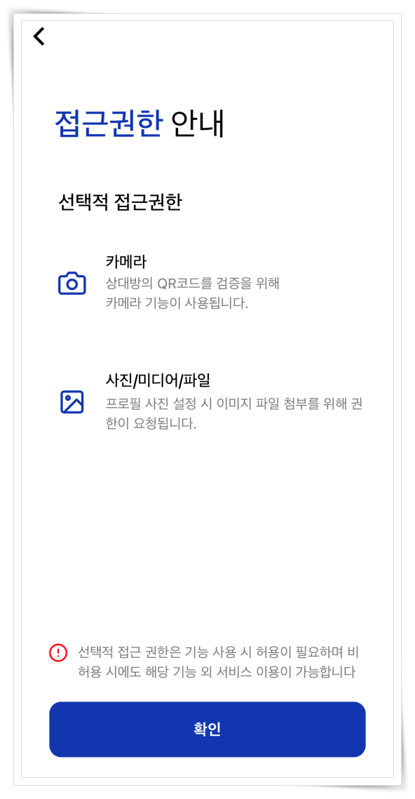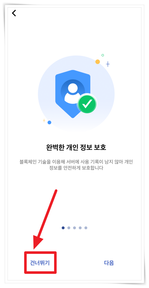 2. 앱 설명글이 나오면 "건너뛰기"를 클릭 후 접근권한에 동의해 주세요.
