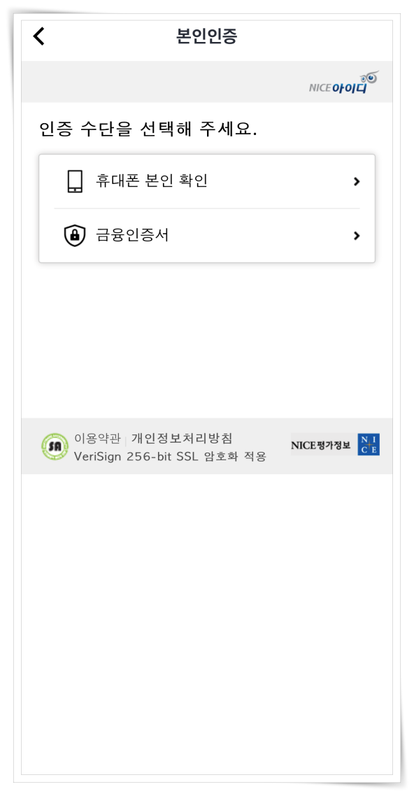 4. "본인인증하기"를 클릭 후 휴대폰 또는 금융인증서로 인증해 주세요.