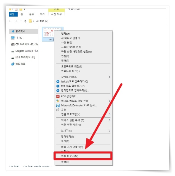 1. 재설치로 해결이 안되었다면 이미지 파일에 마우스 우클릭 후 "이름 바꾸기"를 클릭해 주세요.