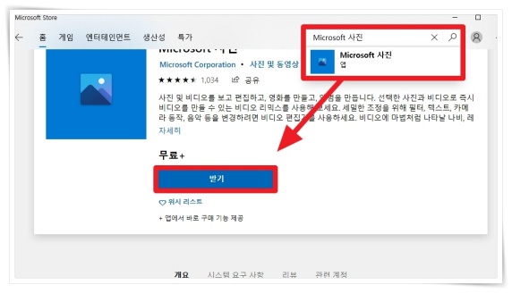 4. Micorsoft Store 검색창에 "Micorsoft 사진"을 검색하여 설치하면 문제를 해결하실 수 있습니다.
