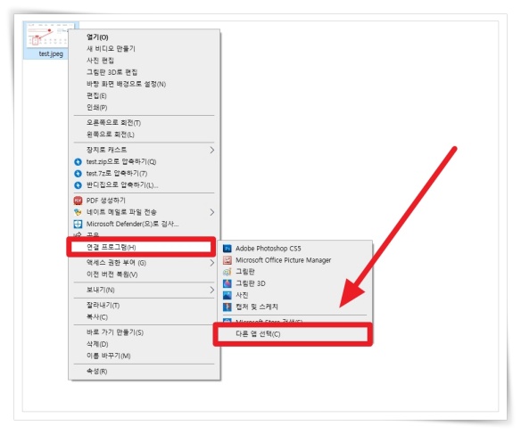 3. 다시 파일에 마우스 우클릭 후 "연결 프로그램" > "다른 앱 선택"을 실행해 주세요.