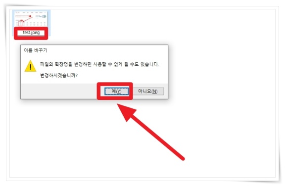 2. 확장자를 "jpeg"로 변경 후 경고창이 나오면 "예"를 클릭해 주세요.
