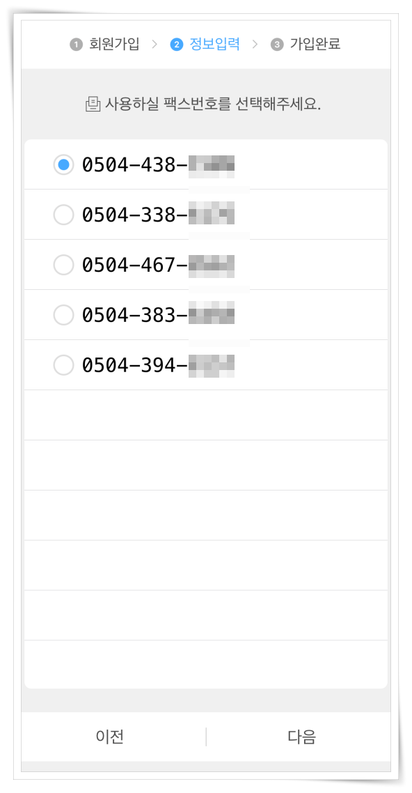 2. 간단한 회원가입 진행 후 사용하실 팩스번호를 선택해 주세요.