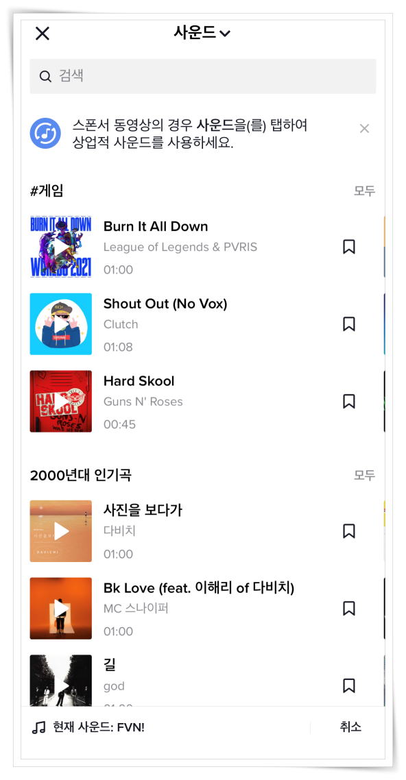 3. 상단 사운드 선택에서 원하는 음악을 설정해 주세요.