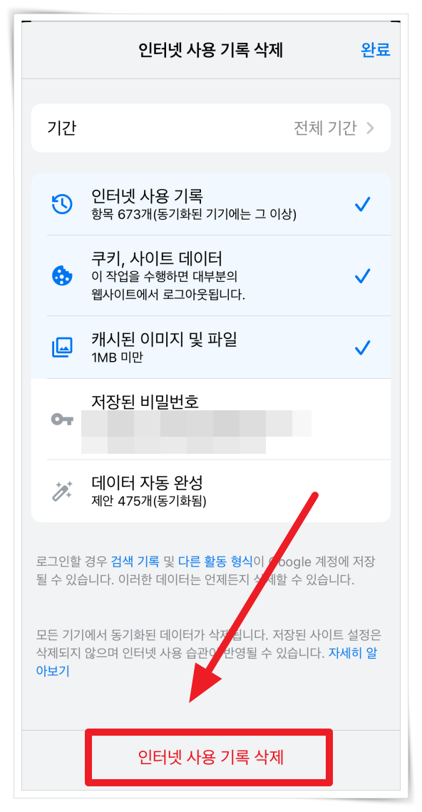 3. 다시 한번 하단에 있는 "기록 삭제"를 클릭하면 깔끔하게 지울 수 있습니다.