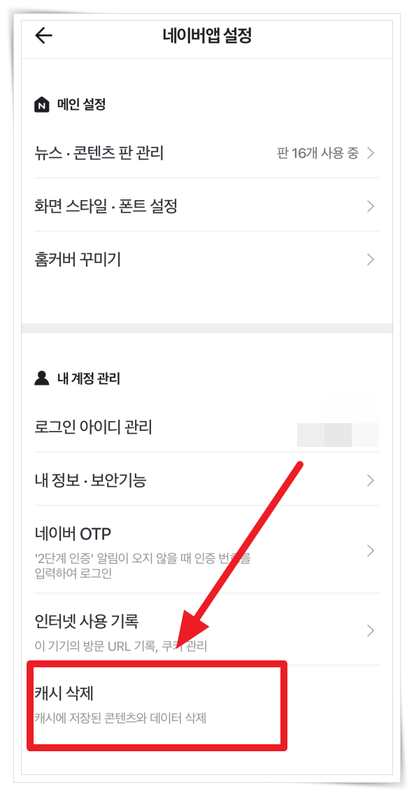 네이버 캐시 및 인터넷 사용 기록 삭제