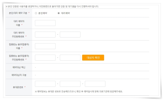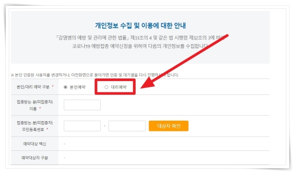 5. 예약 페이지에서 본인/대리 구분에 "대리예약"을 체크해 주세요.