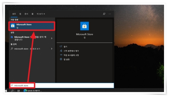 1. 윈도우 좌측 하단 검색창에 "Microsoft store"를 검색해서 열어 주세요.