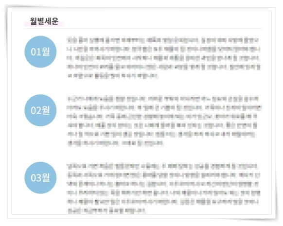 6. 마지막으로 월별세운에서 1월~12월의 월별 운세를 알 수 있어서 안 좋은일에 대해 대비할 수 있습니다. 출력하셔서 자주 보는 곳에 붙여 놓으면 큰 도움이 되실거에요.