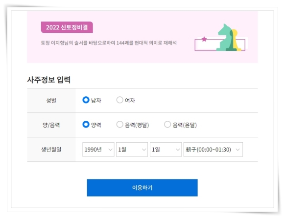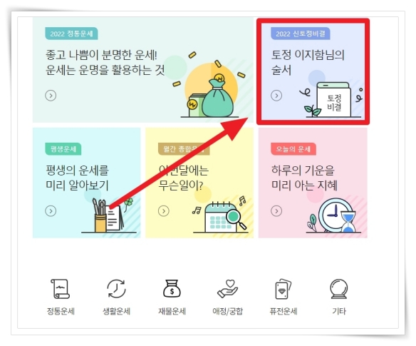 아래는 2022년 무료 토정비결 보는 방법입니다. 참고하셔서 유용하게 사용해 보세요.