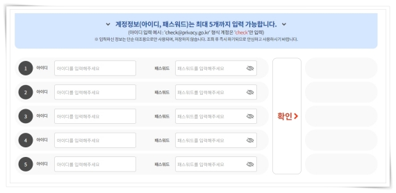 4. 계정정보는 최대 5까지 입력이 가능합니다. 입력된 정보는 저장되지 않으니 걱정하지 않으셔도 되세요.