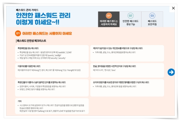 6. 유출이력을 클릭하면 패스워드 관리 가이드 및 생성 팁을 보실 수 있어요.